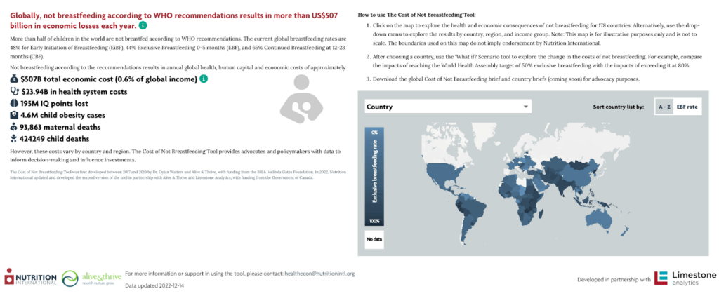The tool is live and can be accessed on Nutrition International’s website: The Cost of Not Breastfeeding Tool.